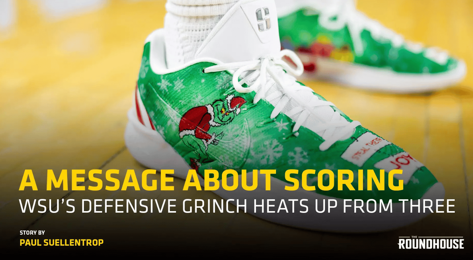 🔼 The Grinch. Wichita State’s Karon Boyd says his custom cleats featuring The Grinch highlight so much about his defensive identity: he’s all about stealing his opponents’ joy. Over the weekend, Boyd, known for his suffocating defense, flipped the switch and led the Shockers with 22 points. With visions of scoring dancing in his head, could we see more custom sneakers on the court for Boyd?